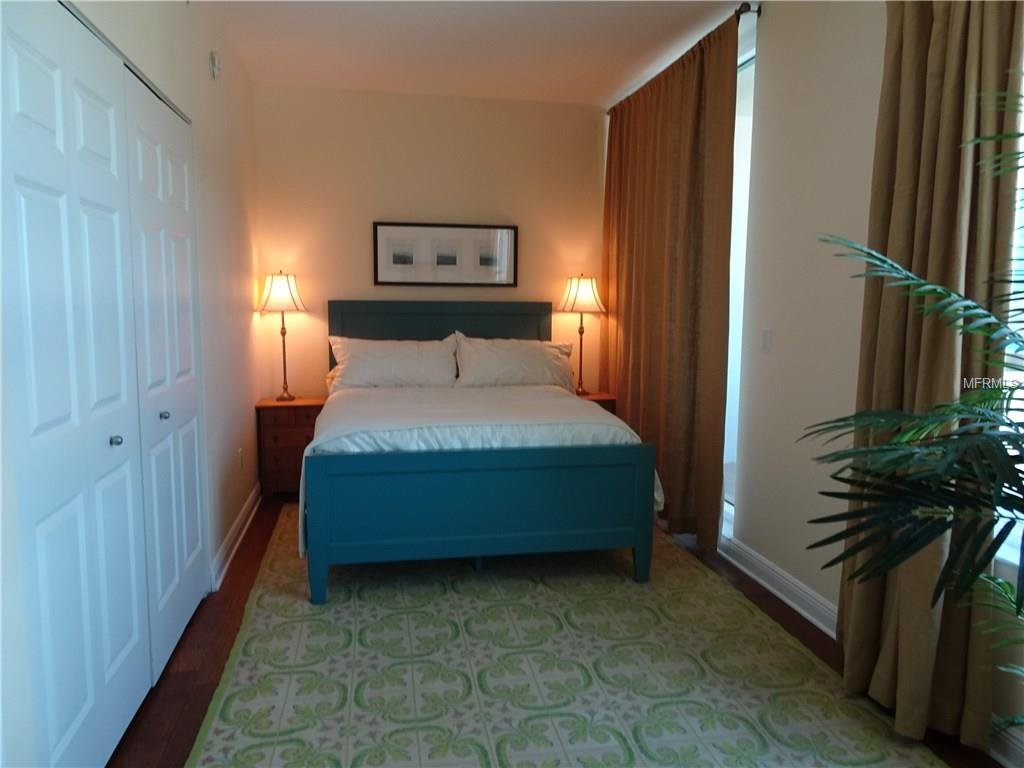 SEASONAL – Downtown 2 bed / 2 bath condo in a stunning contemporary high rise building. There is also a spacious den/office with a double pullout for an overnight guest. The panoramic floor to ceiling living room windows and large balcony, a perfect spot for your morning coffee, overlook the beautiful, wooded, historic neighborhood of Laurel Park and artist colony of Towles Court. There is another private terrace off the guest bedroom. Walking distance to an array of entertainment, shopping, restaurants and Payne Park with its 12 beautifully maintained Har-Tru tennis courts. The concierge staffed building offers swimming, jacuzzi and a state of the art workout gym. There is a gas grill and outdoor dining options. Bicycle storage is on the ground floor for easy access as well as kayak storage. The rent includes bi-weekly cleaning service, leaving you free to fully enjoy the wonderfully convenient downtown Sarasota lifestyle. Call for off-season rates and availability. AVAILABLE FOR HIGH SEASON 2021.