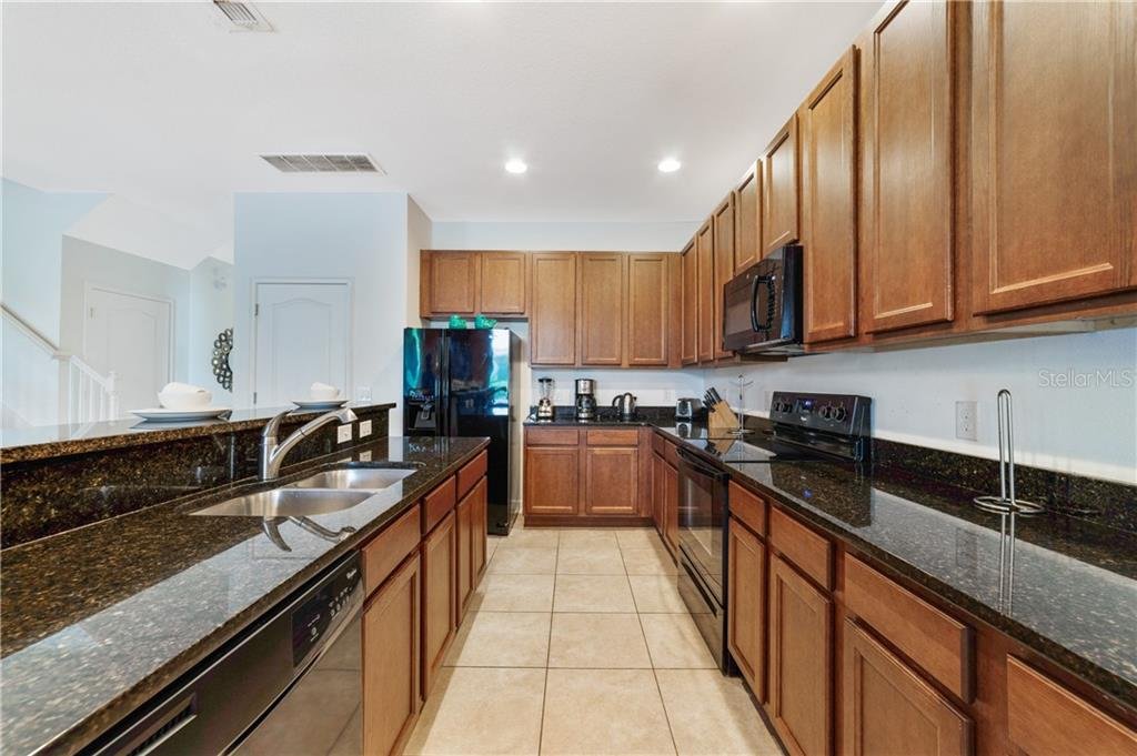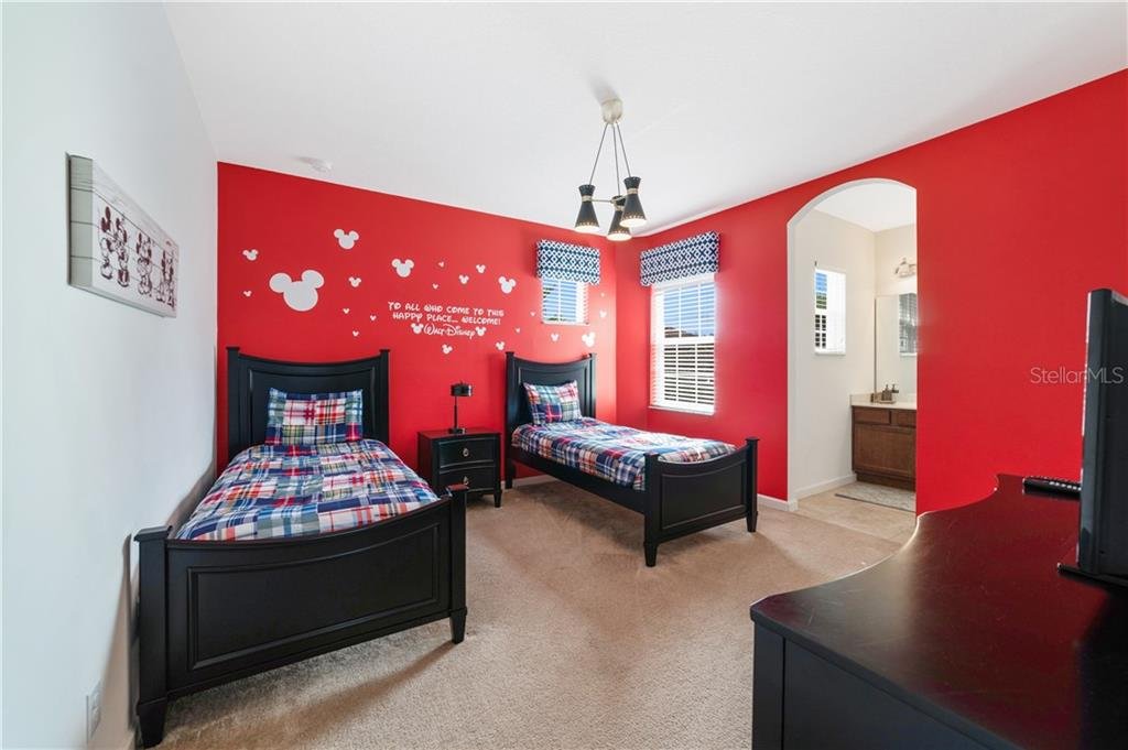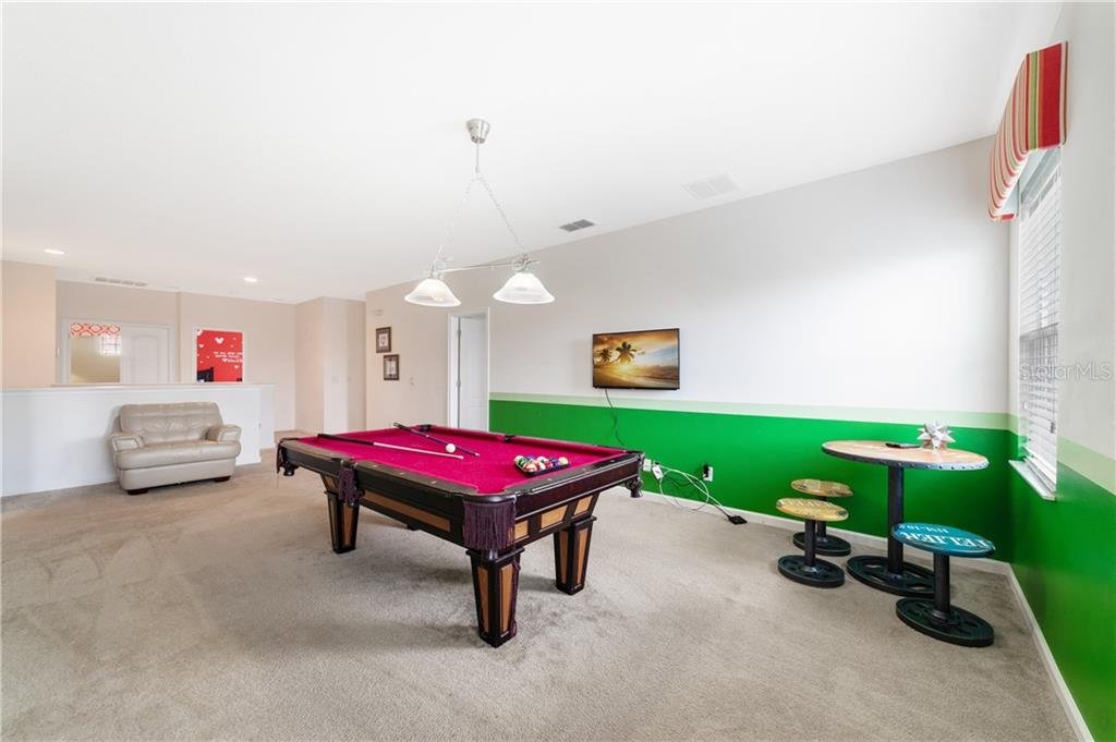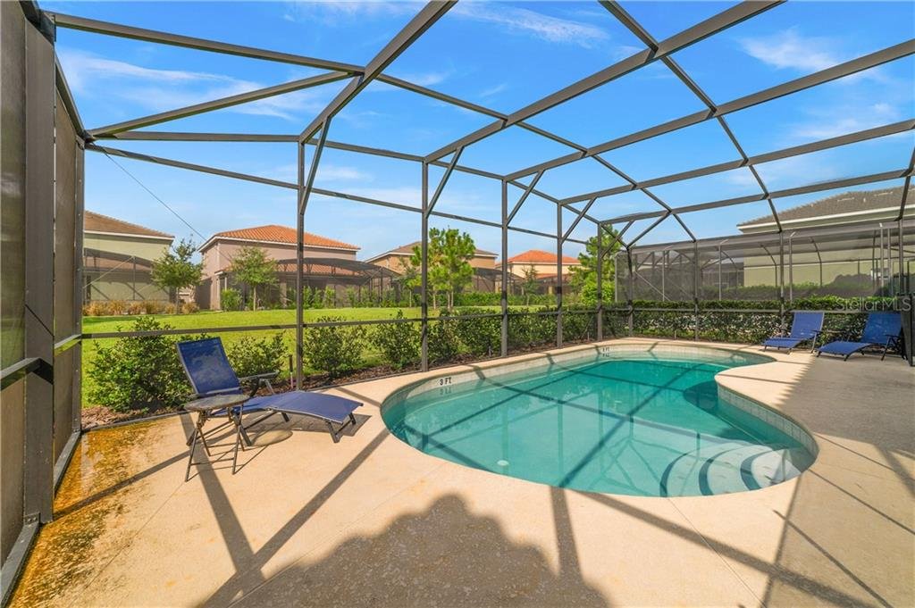 Beautiful fully furnished resort vacation pool home for immediate purchase. 6 large bedrooms and 5 baths. Turnkey ready with the great floor plan Coconut Palm by Park Square Homes. Great loft upstairs with game/media room & theme rooms. Granite kitchen/bathroom countertops, all kitchen appliances, laundry room, screened covered heated pool, covered lanai, and southwest facing pool. Professionally decorated furniture package including leather furniture. Gated entrances. The HOA fully maintains the lawns, common areas and kid-friendly areas. The clubhouse features a resort-style pool & lounge complex and a full exercise room/gym. Large pool with slides, tennis courts and pool cabanas. 15 minutes from Disney. Perfect for income generating short-term rental vacationers seeking what you will have – a secure, family-friendly resort experience. It can be your primary residence or your indulgent vacation home.